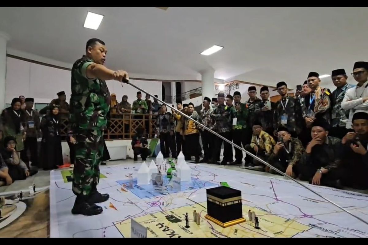 Pantauan Kompas.com di lokasi menunjukkan peta besar kawasan Armuzna dibentangkan di lantai, dilengkapi model medan dan miniatur yang menggambarkan kondisi riil wilayah tersebut.