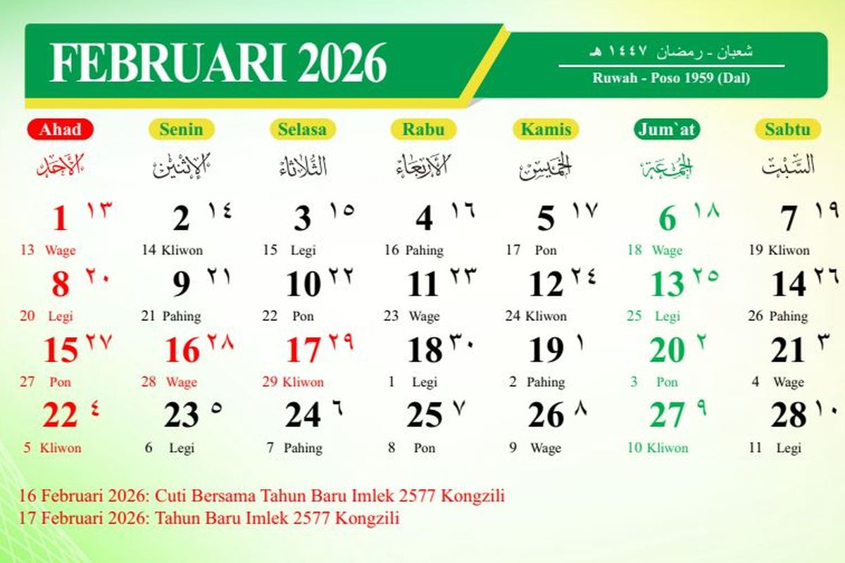 Baca juga: Kalender Februari 2026 Lengkap dengan Tanggal Merah dan Cuti Bersama
