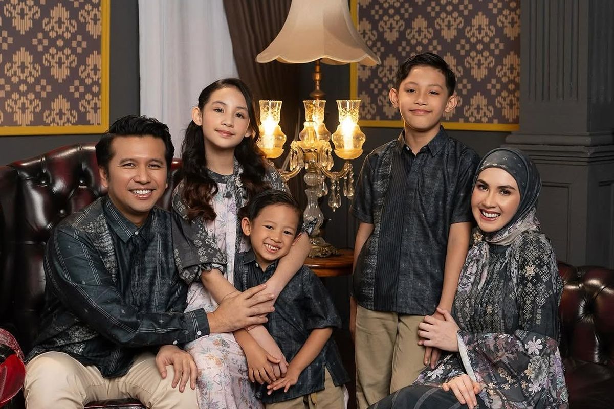 Sementara itu, keselarasan tampilan keluarga dijaga melalui pilihan busana Ayah dan anak laki-laki berupa kemeja koko polos.