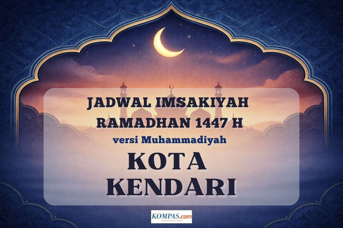 KOMPAS.com - Simak jadwal imsakiyah Ramadhan 2026 versi Muhammadiyah untuk Kota Kendari lengkap dari tanggal 1 hingga 30 Ramadhan 1447 H.