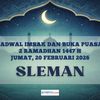 20 Februari 2026 (2 Ramadhan 1447 H): Imsak 05.13 WIB, Subuh 05.23 WIB, dan Maghrib 18.43 WIB.