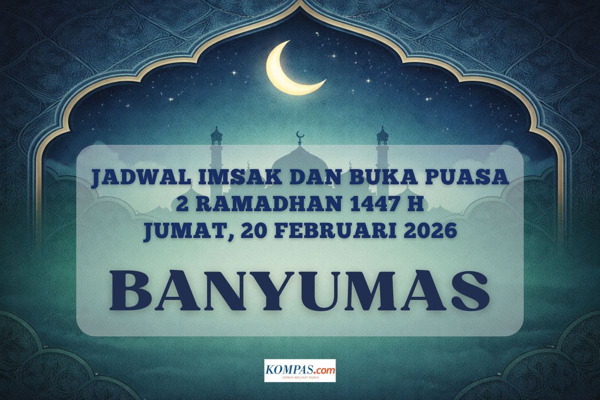 KOMPAS.com - Berikut jadwal imsak dan buka puasa Ramadhan 2026 di Kabupaten Banyumas hari ini, 20 Februari 2026 atau 2 Ramadhan 1447 H.