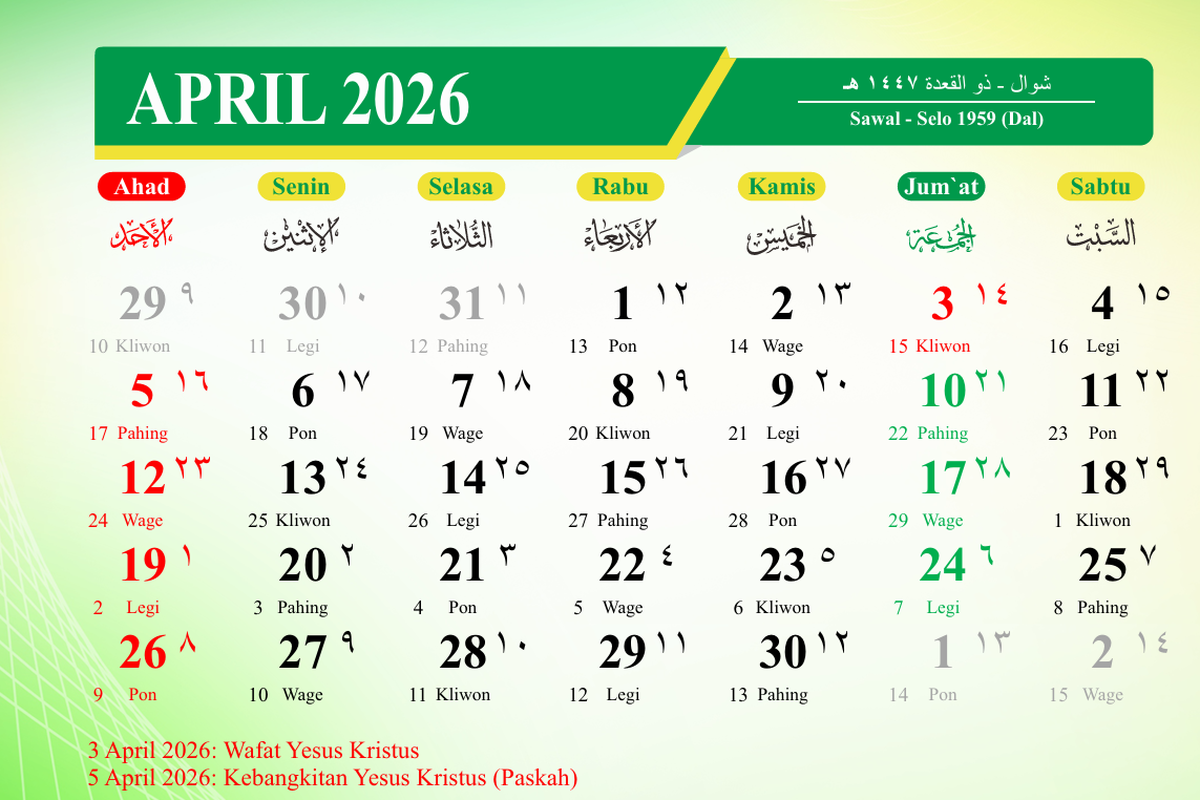 • 26 Syawal 1447 H : Rabu, 15 April 2026