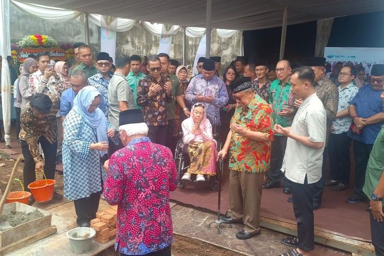 Sinta Nuriyah Abdurrahman Wahid (tengah) menyaksikan peletakan batu pertama Pusat Kajian Islam Asia Tenggara KH. Abdurrahman Wahid di Ciganjur, Jagakarsa, Jakarta Selatan, Sabtu (25/10/2025).