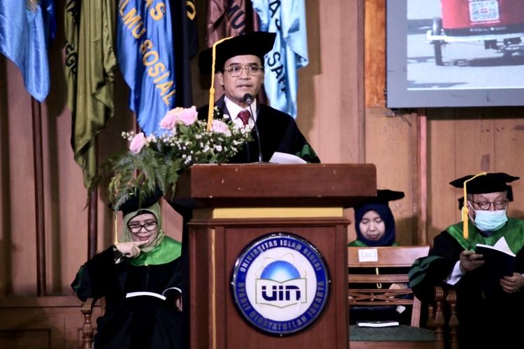 Wakil Ketua Komisi Informasi, Komunikasi, dan Digital (Infokomdigi) Majelis Ulama Indonesia (MUI) 2025-2030, Prof Gun Gun Heryanto seusai dikukuhkan sebagai Guru Besar UIN Syarif Hidayatullah Jakarta, Aula Harun Nasution, Tangerang Selatan, pada Rabu (14/1/2026). Ia menyebut tidak boleh ada kemunduran dalam pelaksanaan demokrasi. (Dok MUI Digital)