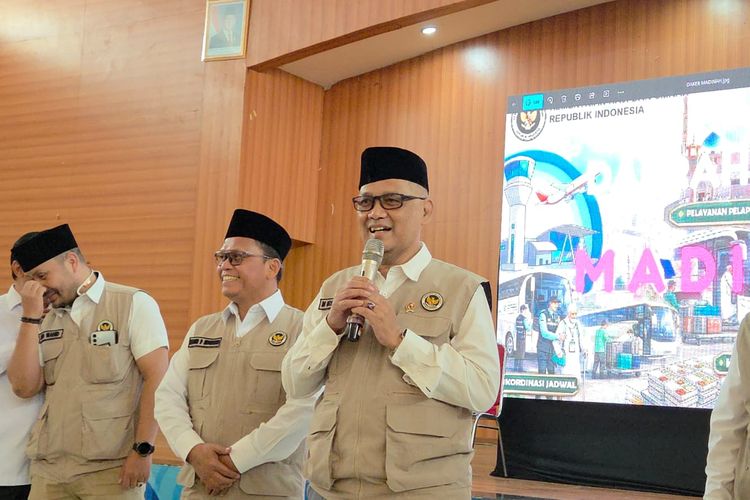 Menteri Haji dan Umrah Mochamad Irfan Yusuf memberikan pembekalan kepada petugas haji 2026, Senin (26/1/2026).(MCH 2026)