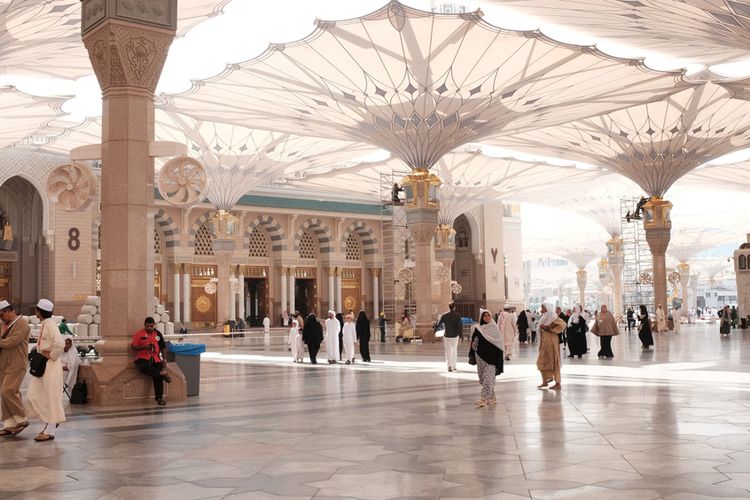 Ilustrasi alur penggunaan tasreh jemaah haji untuk masuk Raudhah di Masjid Nabawi.