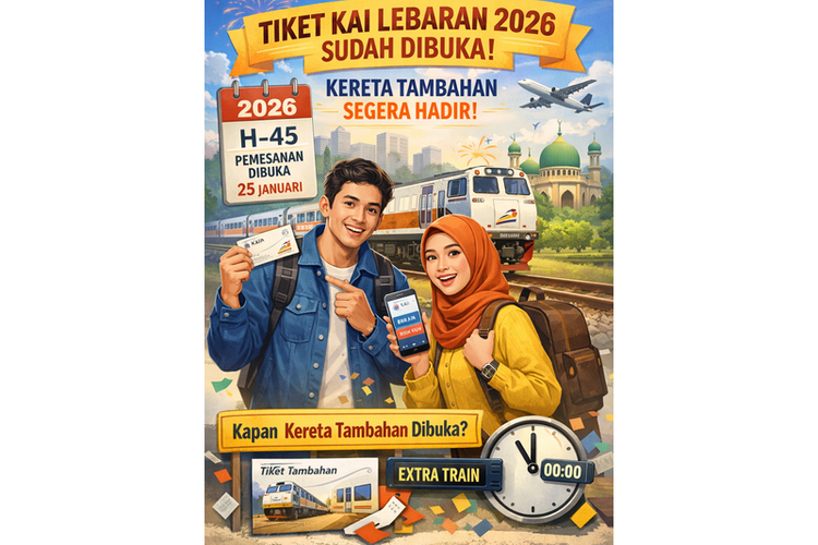 Tiket KAI Lebaran 2026 dan kereta tambahan kapan dibuka?(Ilustrasi AI)