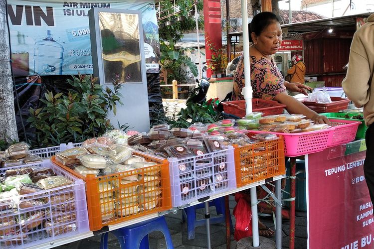 Beberapa penjual kue tradisional hingga kue moderen menjajaki area pasar takjil Kampung Kue di Jalan Rungkut Lor Surabaya