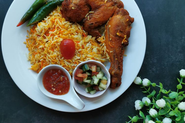 Ilustrasi nasi briyani ayam untuk menu makan spesial di rumah.(DOK.SHUTTERSTOCK/i am syera)