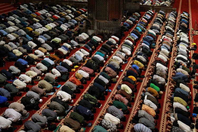 Ilustrasi sholat tarawih di malam bulan Ramadhan.