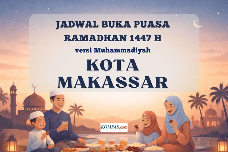 Jadwal buka puasa Kota Makassar selama Ramadhan 2026 versi Muhammadiyah, lengkap dari tanggal 1 - 30 Ramadhan 1447 H.
