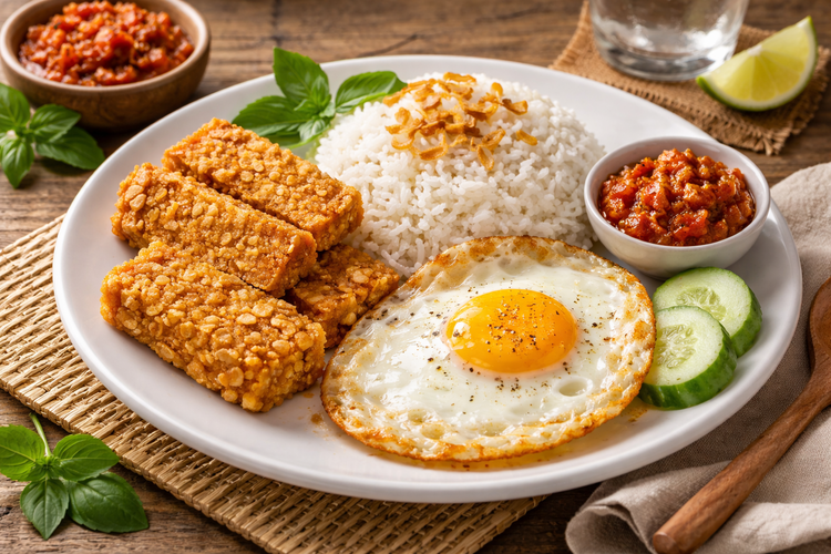 Menu sahur nasi telur tempe