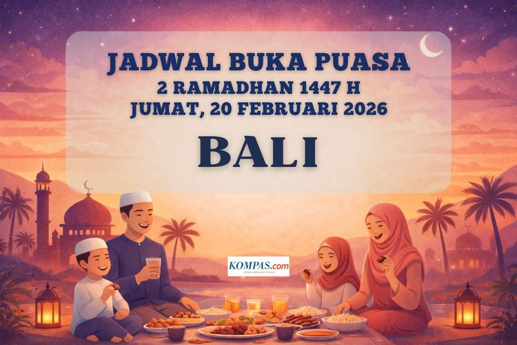 Jadwal buka puasa di Bali hari ini, 20 Februari 2026/2 Ramadhan 1447 H.(KOMPAS.com)
