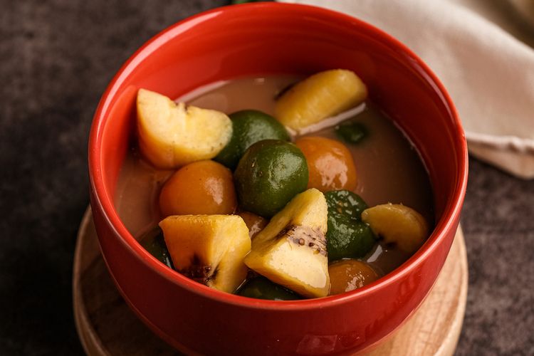 Kolak bola-bola ubi ungu untuk takjil buka puasa.