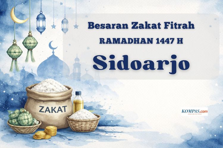 Berikut besaran zakat fitrah 2026 di Kabupaten Sidoarjo baik dalam bentuk beras maupun uang tunai pada bulan Ramadhan 1447 H.
