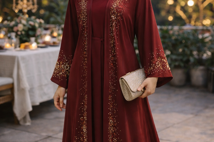 Abaya Evening Look Mewah untuk Kondangan dan Pesta.