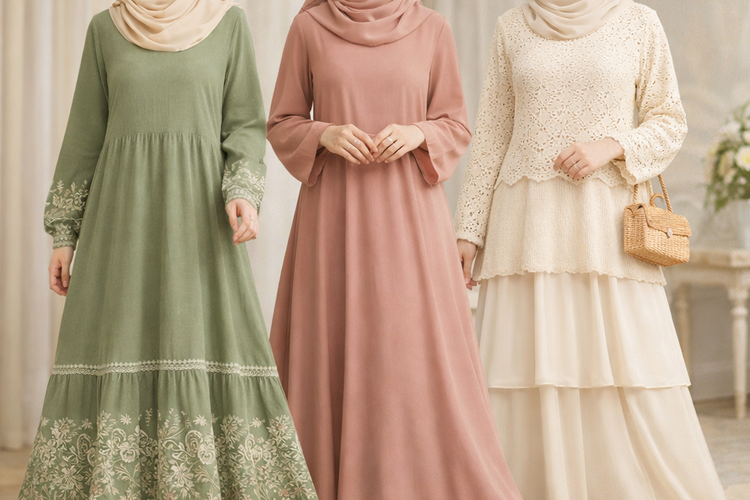 Model baju lebaran 2026 terbaru wanita: Siluet Flowy dan Sentuhan Minimalis.(Ilustrasi dibuat AI)