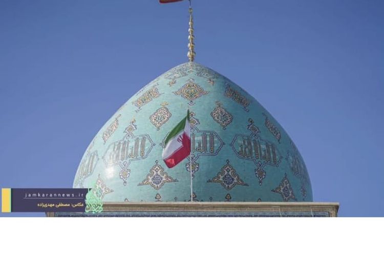 Bendera merah bertuliskan ?Ya latharat al-Husayn? berkibar di atas kubah pirus Masjid Jamkaran, Qom, menyusul laporan wafatnya Pemimpin Tertinggi Iran Ayatollah Ali Khamenei.