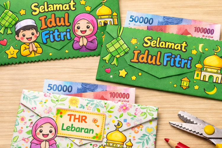 3 Ide Amplop Lebaran yang Mudah Dibuat di Rumah, Bisa Sekalian Aktivitas Mewarnai Bareng Anak.(Ilustrasi dibuat AI)