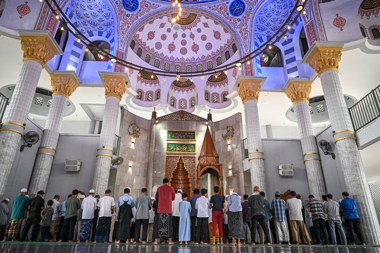 Umat Islam melaksanakan shalat di Masjid Jami Al Fajri, Pasar Minggu, Jakarta, Senin (2/3/2026). Masjid yang berdiri tahun 1947 tersebut memiliki desain bangunan seperti Masjid Sultan Ahmed atau Masjid Biru di Istanbul, Turki dan memiliki luas bangunan 1.000 meter persegi. ANTARA FOTO/Fauzan/foc.(DOK. ANTARA FOTO /FAUZAN)