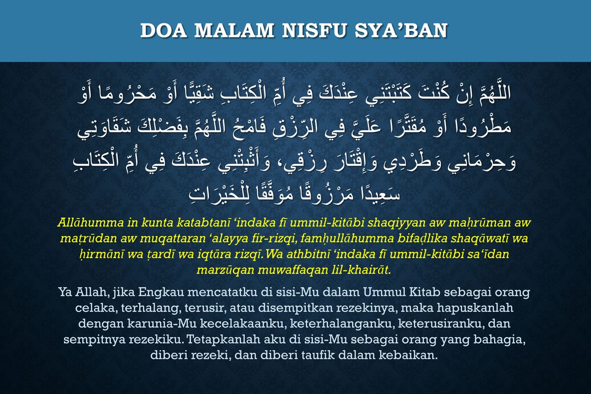 Baca juga: Doa Malam Nisfu Syaban: Amalan di Waktu Penuh Ampunan