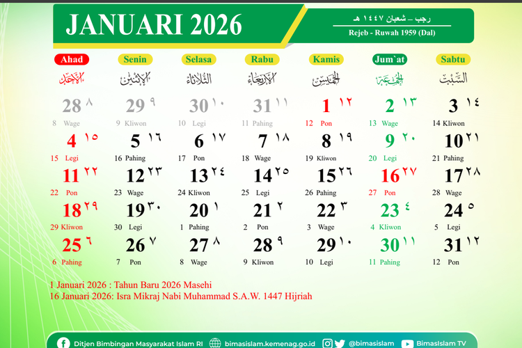 Kalender Jawa Januari 2026.(Tangkap Layar Kalender Hijriyah 2026 Kemenag)